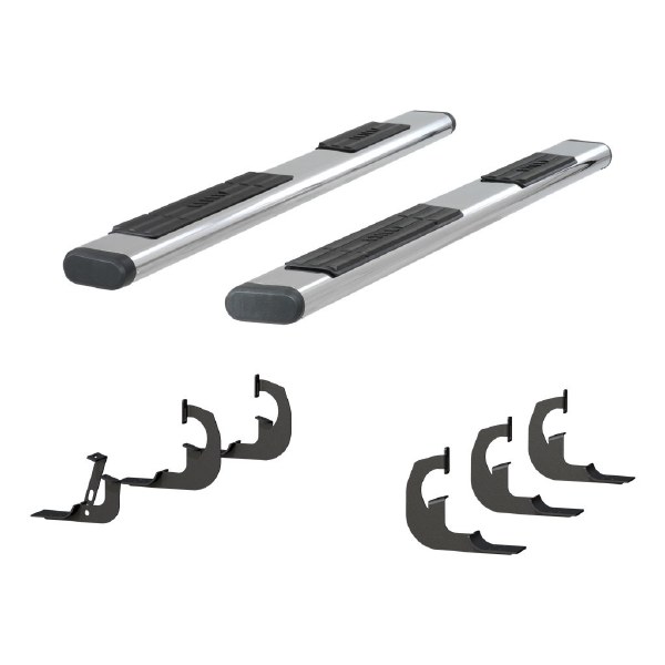 For solid footing, a comfortable step and a bold look for your truck, ARIES 6" oval side bars are a step up. They offer a bold 6" diameter with generous 5" non-skid step pads. They are made with an original equipment (OE) styling and feature a track system for easy installation, using vehicle-specific brackets. These 6" ovals are constructed with truly rust-resistant 304 stainless steel and have a mirror-like polished finish for a bright accent. They are also available in a lightweight, powder-coated aluminum option.