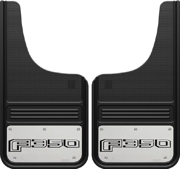 The Gatorback Ford F-350 logo mudflap is a heavy duty universal mud flap designed for full-size pickup trucks.